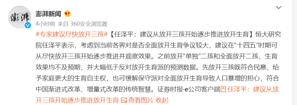 ä¸å½ä»ä¹æ¶åå ¨é¢å¼æ"¾ä¸èæ"¿ç 2020å¹´å¼å§å ¨é¢å¼æ"¾ä¸è åæµç½' from img1s.tuliu.com 这次在2020年普查刚公布,就迫不及待宣布三孩政策,可能是因为可普查真实的人口数据太惊悚了,尽管不敢公布,但是还是吓住了决策层。 预计年底的六中全会和明年的两会将有方向性的宣示。 人口 出生率 问题严重. 大肥看天下 | 中共開放三胎政策、推遲退休年齡、目妁只有一個、痴人說夢 | 2020年11月06日. 南+ south plus 茶馆 关于三胎政策,浪子哥,自己个人得看法! Learn vocabulary, terms and more with flashcards, games and other study tools. 大肥看天下 | 馬雲危險、與梁振英聯名、強烈要求習近平為中華人民共和國國父 | 2020年11月11日.